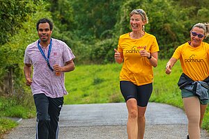 In den letzten beiden Jahren hat sich die Ebenberg-parkrun-Community verstärkt für das Thema Inklusion engagiert. Neun vom Guidenetzwerk Deutschland ausgebildete Blindenguides bieten zum Beispiel sehbeeinträchtigten Menschen die Möglichkeit zur Teilnahme. Außerdem können Menschen mit unterschiedlichsten körperlichen und geistigen Einschränkungen teilnehmen. Auch Menschen mit Beeinträchtigungen, die ohne Betreuung kommen können, werden als Teil der Community gerne aufgenommen. „Es ist unglaublich schön zu sehen, dass jeder einen Platz findet – egal ob mit Rollstuhl, Kinderwagen oder besonderen Bedürfnissen“, sagt Markus Bayer. „Der parkrun bietet den Rahmen dafür, aber wie es gelebt wird, das ist die Community.“